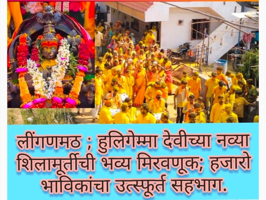 नवीन लींगणमठ ; हुलिगेम्मा देवीच्या नव्या शिलामूर्तीची भव्य मिरवणूक; हजारो भाविकांचा उत्स्फूर्त सहभाग- ಹೊಸ ಲಿಂಗನಮಠ; ಹೊಸ ಹುಲಿಗೆಮ್ಮ ದೇವಿಯ ಕಲ್ಲಿನ ವಿಗ್ರಹದ ಭವ್ಯ ಮೆರವಣಿಗೆ; ಸಾವಿರಾರು ಭಕ್ತರ ಸ್ವಯಂಪ್ರೇರಿತ ಭಾಗವಹಿಸುವಿಕೆ.