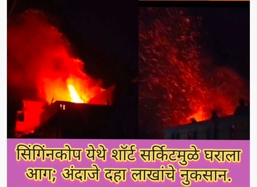 सिंगिंनकोप येथे शॉर्ट सर्किटमुळे घराला आग; अंदाजे दहा लाखांचे नुकसान-ಶಾರ್ಟ್ ಸರ್ಕ್ಯೂಟ್ನಿಂದ ಸಿಂಗಿಂನಕೊಪ ಊರಿನಲ್ಲಿ ಮನೆಗೆ ಬೆಂಕಿ; ಅಂದಾಜು ಹತ್ತು ಲಕ್ಷ ನಷ್ಟ.