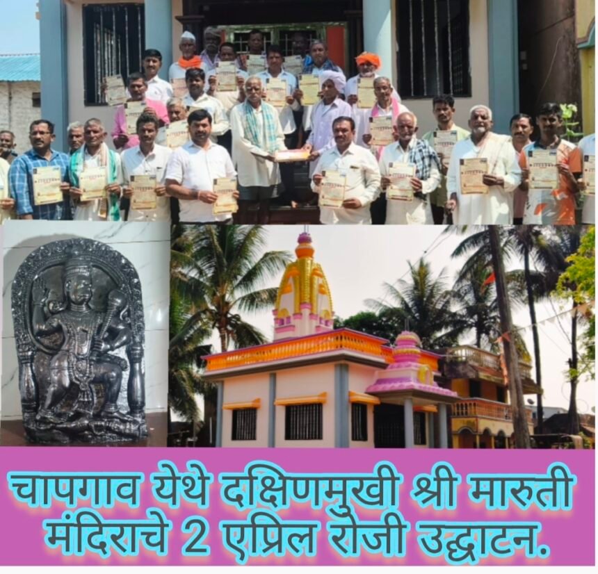 चापगाव येथे दक्षिणमुखी श्री मारुती मंदिराचे 2 एप्रिल रोजी उद्घाटन; ‘शोध चंपावती नगरीचा’ पुस्तक प्रकाशन व धर्मसभेचे आयोजन-ಚಾಪಗಾವ ಊರಿನಲ್ಲಿ ದಕ್ಷಿಣಮುಖಿ ಶ್ರೀ ಆಂಜನೇಯ ದೇವಾಲಯ ಏಪ್ರಿಲ್ 2 ರಂದು ಉದ್ಘಾಟನೆ; ‘ಶೋಧ ಚಂಪಾವತಿ ನಗರಿಯ’ ಪುಸ್ತಕ ಬಿಡುಗಡೆ ಹಾಗೂ ಧರ್ಮಸಭೆ ಆಯೋಜನೆ.