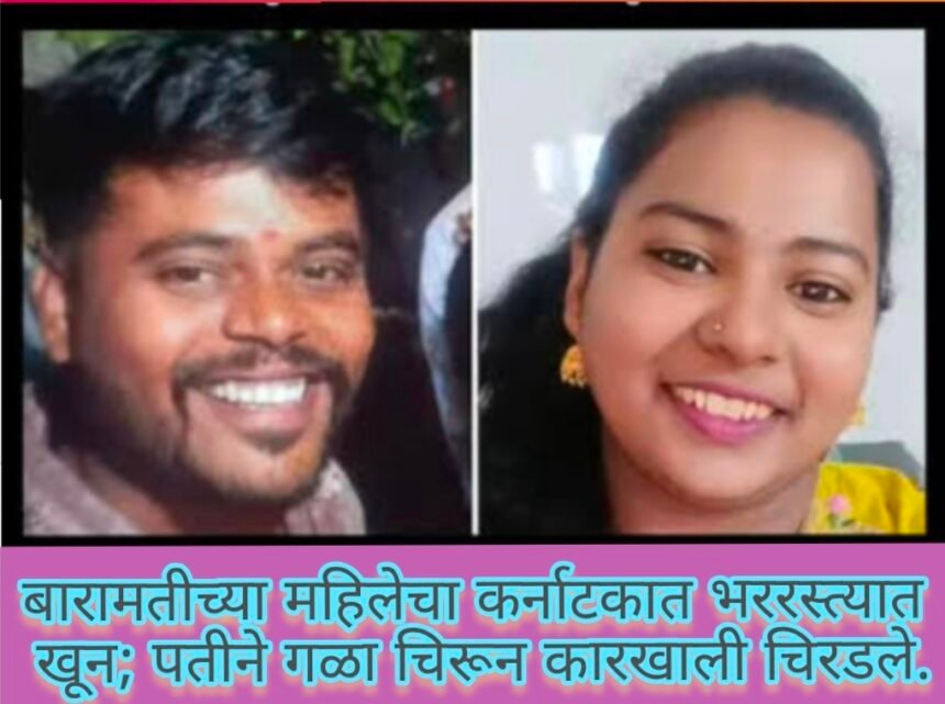 बारामतीच्या महिलेचा कर्नाटकात भररस्त्यात खून; पतीने गळा चिरून कारखाली चिरडले-ಕರ್ಣಾಟಕದ ನಡುರಸ್ತೆಯಲ್ಲೇ ಬಾರಾಮತಿಯ ಮಹಿಳೆಯ ಹತ್ಯೆ ; ಪತಿಯೇ ಕತ್ತು ಕತ್ತರಿಸಿ ಕಾರಿನಿಂದ ಗುದ್ದಿ ಹತ್ಯೆ ಮಾಡಿದನು.