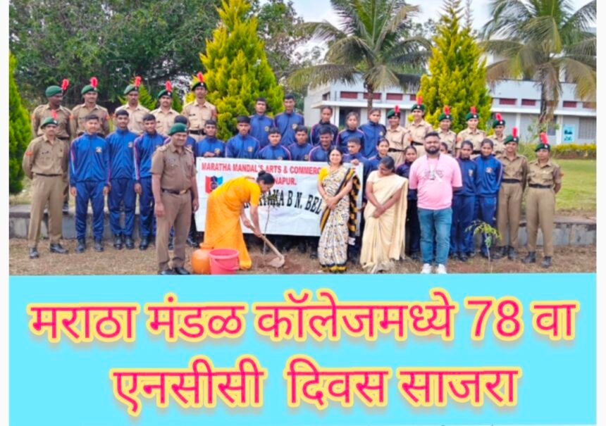 खानापूर (प्रतिनिधी) : मराठा मंडळ कला आणि वाणिज्य महाविद्यालयात 78 वा एनसीसी दिन उत्साहात साजरा करण्यात आला. महाविद्यालयातील एनसीसी विभागाच्या वतीने विविध उपक्रमांचे आयोजन करण्यात आले असून, पर्यावरण संवर्धनाचा संदेश देत विद्यार्थ्यांनी वृक्षारोपण करून एनसीसी दिन साजरा केला.