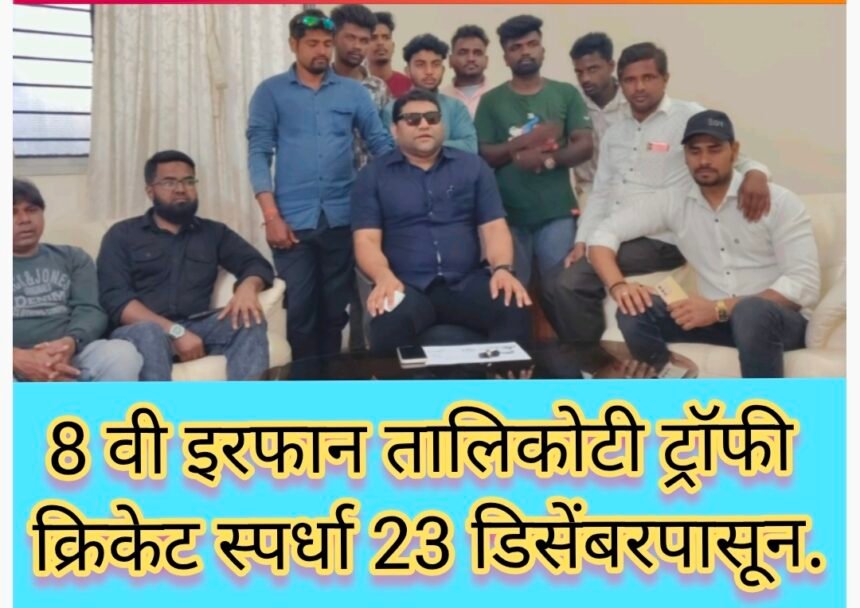 8 वी इरफान तालिकोटी ट्रॉफी क्रिकेट स्पर्धा २३ डिसेंबरपासून; पहिल्या विजेत्यास 1,00,888 रूपये, द्वितीय पारितोषिक 50,888 रूपये.
