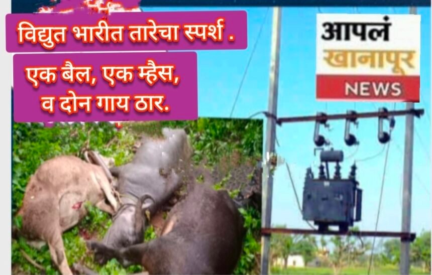 खानापूर तालुक्यात दोन ठिकाणी, विद्युत भारीत तारेचा स्पर्श होऊन, एक बैल, एक म्हैस व दोन गाय मृत्युमुखी.