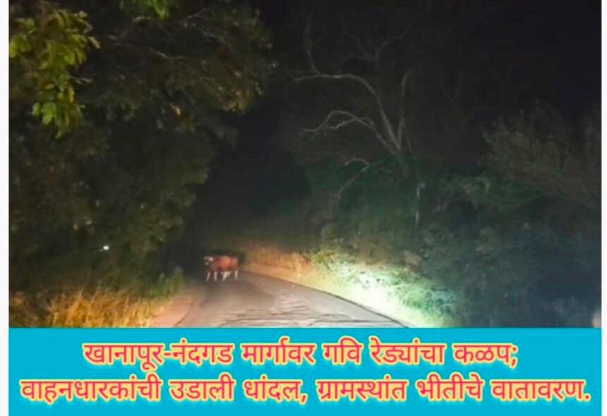 खानापूर-नंदगड मार्गावर गवि रेड्यांचा कळप; वाहनधारकांची उडाली धांदल, ग्रामस्थांत भीतीचे वातावरण.