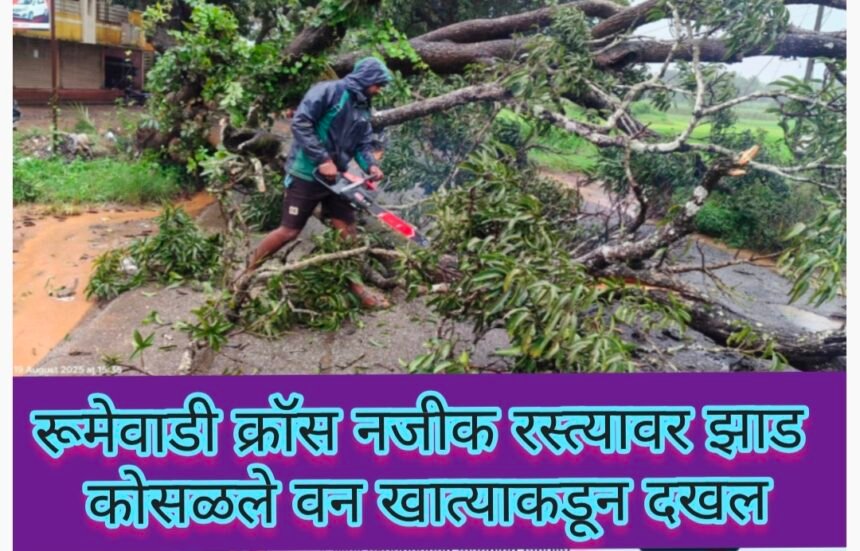 ಖಾನಾಪುರ-ನಂದಗಡ ರಸ್ತೆ ರುಮೇವಾಡಿ ಕ್ರಾಸ್ ಹತ್ತಿರ ಮರ ಬಿದ್ದು ಸಂಚಾರ ಸ್ಥಗಿತ