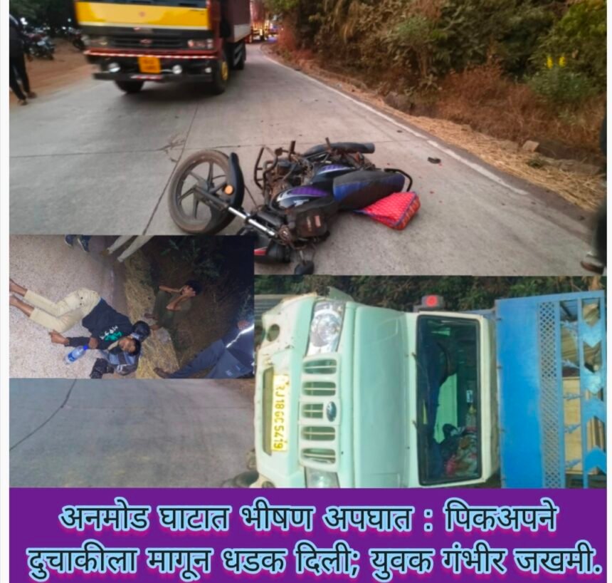अनमोड घाटात भीषण अपघात : पिकअपने दुचाकीला मागून धडक दिली; कारलगा ता खानापूर येथील युवक गंभीर जखमी