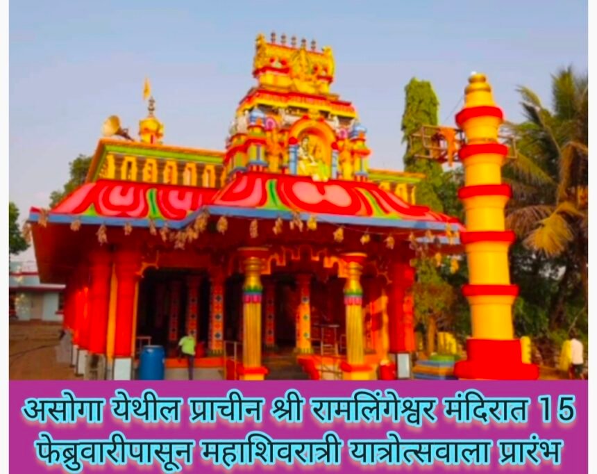 असोगा येथील प्राचीन श्री रामलिंगेश्वर मंदिरात 15 फेब्रुवारीपासून महाशिवरात्री यात्रोत्सवाला प्रारंभ.