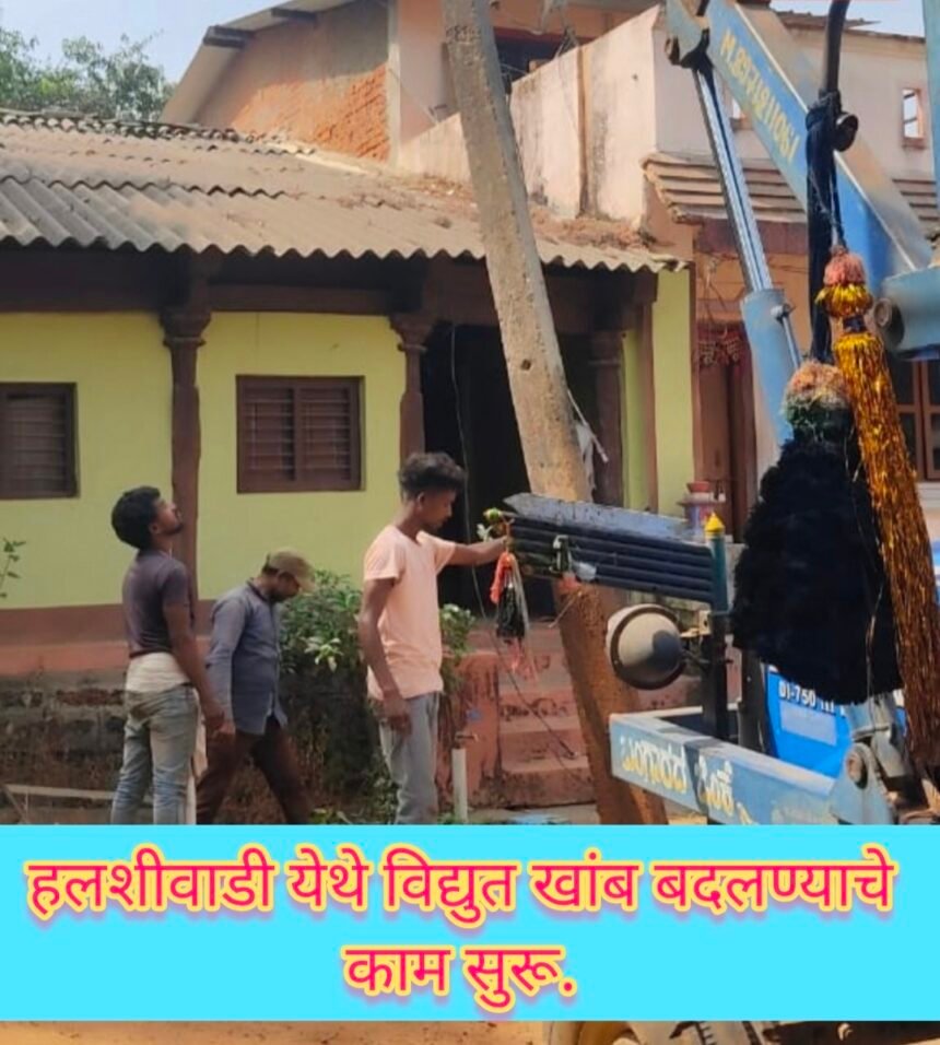हलशीवाडी ग्रामस्थांच्या निवेदनाची दखल. खांब बदलण्याचे काम सुरू. ग्रामस्थांनी व्यक्त केले समाधान-ಹಲಶಿವಾಡಿ ಗ್ರಾಮಸ್ಥರ ಮನವಿ ಯನ್ನು ಗಮನಿಸಿದ ಇಲಾಖೆ. ವಿದ್ಯುತ್ ಕಂಬಗಳನ್ನು ಬದಲಾಯಿಸುವ ಕೆಲಸ ಪ್ರಾರಂಭ.