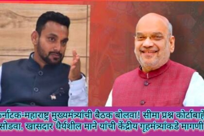 कर्नाटक-महाराष्ट्र मुख्यमंत्र्यांची बैठक बोलवा! सीमा प्रश्न कोर्टाबाहेर सोडवा. खासदार धैर्यशील माने यांची केंद्रीय गृहमंत्र्यांकडे मागणी!ಕರ್ನಾಟಕ–ಮಹಾರಾಷ್ಟ್ರ ಮುಖ್ಯಮಂತ್ರಿ ಸಭೆ ನಡೆಸಿ ಗಡಿ ಸಮಸ್ಯೆ ನ್ಯಾಯಲಯದ ಹೊರಗೆ ಪರಿಹರಿಸಲು ಒತ್ತಾಯ – ಸಂಸದ ಧೈರ್ಯಶೀಲ ಮಾನೆ ಅವರು ಕೇಂದ್ರ ಸರ್ಕಾರಕ್ಕೆ ಮನವಿ