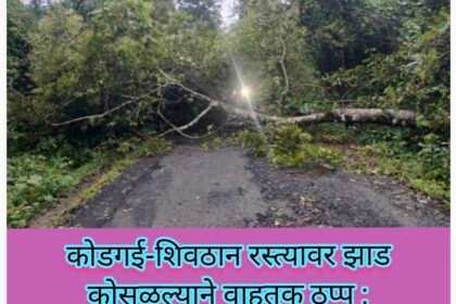 कोडगई-शिवठान रस्त्यावर झाड कोसळल्याने वाहतूक ठप्प ; समाजसेवकांच्या प्रयत्नाने रस्ता मोकळा! खानापूर…