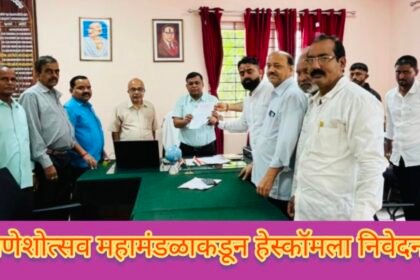 गणेशोत्सव मिरवणूक मार्गावरील विद्युत खांब बदलण्यासाठी, महामंडळाकडून हेस्कॉमला निवेदन-ಗಣೇಶೋತ್ಸವ ಮೆರವಣಿಗೆ ಬಾಕಿ ಉಳಿದಿರುವ ಮಾರ್ಗದಲ್ಲಿ ವಿದ್ಯುತ್ ಕಂಬಗಳನ್ನು ಬದಲಾಯಿಸುವಂತೆ ಗಣೇಶೋತ್ಸವ ಮಹಾಮಂಡಲದ ವತಿಯಿಂದ ಹೆಸ್ಕಾಂ ಅಧಿಕಾರಿಗಳಿಗೆ ಮನವಿ ಸಲ್ಲಿಕೆ.
