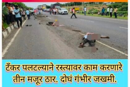 टँकर पलटल्याने रस्त्यावर काम करणारे तीन मजूर ठार. दोघं गंभीर जखमी. बेळगाव…