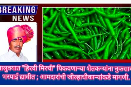 तालुक्यात "हिरवी मिरची" पिकवणाऱ्या शेतकऱ्यांना नुकसान भरपाई द्यावीत ; आमदारांची जील्हाधीकाऱ्यांकडे मागणी.…