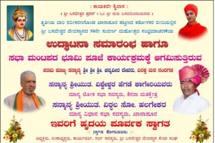शुक्रवारी बसवेश्वर मंदिराचा सुवर्ण महोत्सव आणि सभा मंडपाच्या बांधकामाचे भूमिपूजन. खासदार सहभागी होणार. ಶುಕ್ರವಾರ ಬಸವೇಶ್ವರ ದೇವಸ್ಥಾನದ ಸುವರ್ಣ ಮಹೋತ್ಸವ ಹಾಗೂ ಸಭಾ ಮಂಟಪ ನಿರ್ಮಾಣದ ಶಿಲಾನ್ಯಾಸ ಸಮಾರಂಭ. ಸಂಸದರು ಭಾಗವಹಿಸಲಿದ್ದಾರೆ.