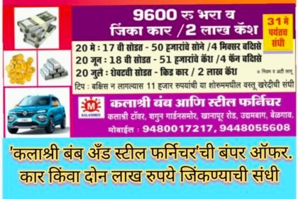 कार किंवा दोन लाख रुपये जिंकण्याची संधी 'कलाश्री बंब अँड स्टील फर्निचर'ची…
