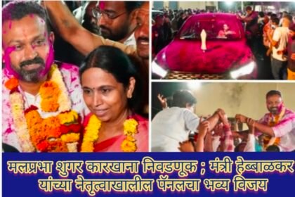 मलप्रभा शुगर कारखाना निवडणूक ; मंत्री हेब्बाळकर यांच्या नेतृत्वाखालील पॅनलचा भव्य विजय-ಮಲಪ್ರಭಾ ಶುಗರ್ಸ್ ; ಸಚಿವೆ ಚುನಾವಣೆ ಹೆಬ್ಬಾಳಕರ್ ನೇತೃತ್ವದಲ್ಲಿ ಭರ್ಜರಿ ಗೆಲುವು