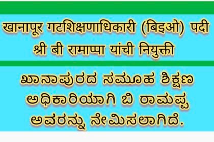 खानापूरच्या गट शिक्षणाधिकारी पदी बी रामाप्पा यांची नेमणूक-ಖಾನಾಪುರದ ಸಮೂಹ ಶಿಕ್ಷಣ ಅಧಿಕಾರಿಯಾಗಿ ಬಿ ರಾಮಪ್ಪ ಅವರ ನೇಮಕ.