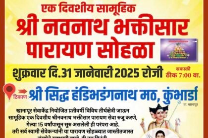 श्री सिद्ध हंडीभडंगनाथ मठ कुंभार्डा येथे, एक दिवशीय सामूहिक श्री नवनाथ भक्तिसार पारायण सोहळ्याचे आयोजन -ಕುಂಭಾರಡಾ ಶ್ರೀ ಸಿದ್ಧ ಹಂಡಿಭದಂಗನಾಥ ಮಠದಲ್ಲಿ ಒಂದು ದಿನದ ಸಾಮೂಹಿಕ ಶ್ರೀ ನವನಾಥ ಭಕ್ತಿಸಾರ್ ಪಾರಾಯಣ ಸಮಾರಂಭದ ಆಯೋಜನೆ.