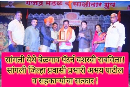 सांंगली येथे बेळगाव पॅटर्न यशस्वी राबविला! सांगली जिल्हा प्रवासी प्रभारी अभय पाटील व सहकाऱ्यांचा सत्कार!ಸಾಂಗ್ಲಿಯಲ್ಲಿ ಬೆಳಗಾವಿ ಮಾದರಿ ಯಶಸ್ವಿಯಾಗಿ ಜಾರಿ! ಸಾಂಗಲಿ ಜಿಲ್ಲಾ ಪ್ರವಾಸಿ ಪ್ರಭಾರಿ ಅಭಯ ಪಾಟೀಲ ಹಾಗೂ ಸಂಗಡಿಗರ ಸನ್ಮಾನ.
