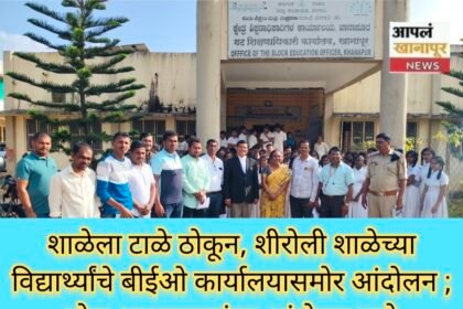शाळेला टाळे ठोकून, शीरोली शाळेच्या विद्यार्थ्यांचे बीईओ कार्यालयासमोर आंदोलन ; ठोस आश्वासनानंतर आंदोलन मागे-ಶಾಲೆಗೆ ಬೀಗ ಹಾಕಿ ಪ್ರತಿಭಟಿಸಿ ಶಿರೋಳಿ ಶಾಲೆಯ ವಿದ್ಯಾರ್ಥಿಗಳು ಬಿಇಒ ಕಚೇರಿ ಎದುರು ಪ್ರತಿಭಟನೆ; ದೃಢ ಭರವಸೆಯ ನಂತರ ಪ್ರತಿಭಟನೆ ವಾಪಸು.
