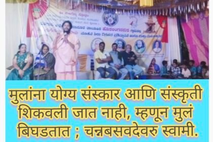 मुलांना योग्य संस्कार आणि संस्कृती शिकवली जात नाही, म्हणून मुलं बिघडतात ; चन्नबसवदेवरु स्वामी-ಮಕ್ಕಳಿಗೆ ಸರಿಯಾದ ಸಂಸ್ಕಾರ ಮತ್ತು ಸಂಸ್ಕೃತಿ ಕಲಿಸಲಾಗದ ಕಾರಣವೇ ಮಕ್ಕಳು ದಾರಿ ತಪ್ಪುತ್ತಿದ್ದಾರೆ ; ಚನ್ನಬಸವದೇವರು ಸ್ವಾಮಿ.