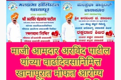 माजी आमदार अरविंद पाटील यांच्या वाढदिवसानिमित्त खानापूरात मोफत आरोग्य तपासणी व रक्तदान शिबिर-ಮಾಜಿ ಶಾಸಕರಾದ ಅರವಿಂದ ಪಾಟೀಲ್ ಅವರ ಜನ್ಮದಿನದ ನಿಮಿತ್ತ ಖಾನಾಪುರದಲ್ಲಿ ನುರಿತ ವೈದ್ಯರಿಂದ ಉಚಿತ ಆರೋಗ್ಯ ತಪಾಸಣೆ ಹಾಗೂ ರಕ್ತದಾನ ಶಿಬಿರ.