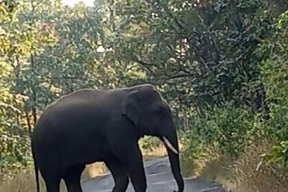 घोटगाळी-रंजनकुडी मार्गावर हत्तीचे दर्शन व शेतात आगमन ! वन विभागाच्या कर्मचाऱ्यांनी हत्तीला…