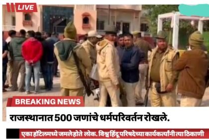 राजस्थानात, हॉटेलमध्ये 500 जणांचं धर्मातर करण्याचा प्रयत्न- ರಾಜಸ್ಥಾನದಲ್ಲಿ ಹೋಟೆಲ್ ಒಂದರಲ್ಲಿ 500 ಜನರನ್ನು ಮತಾಂತರಿಸುವ ಯತ್ನ ನಡೆದಿದೆ.