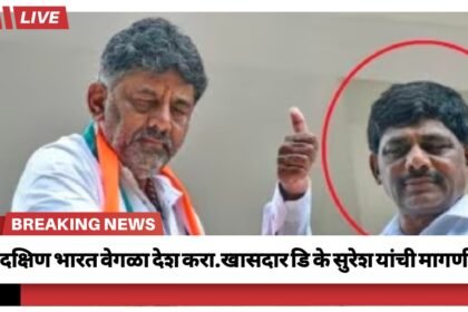दक्षिण भारत वेगळा देश जाहीर करा’, काँग्रेस खासदार डी.के सुरेश यांची अजब मागणी – ದಕ್ಷಿಣ ಭಾರತವನ್ನು ಪ್ರತ್ಯೇಕ ದೇಶವನ್ನಾಗಿ ಘೋಷಿಸಿ’ ಎಂದು ಕಾಂಗ್ರೆಸ್ ಸಂಸದ ಡಿ.ಕೆ.ಸುರೇಶ್ ಅವರ ವಿಚಿತ್ರ ಬೇಡಿಕೆ