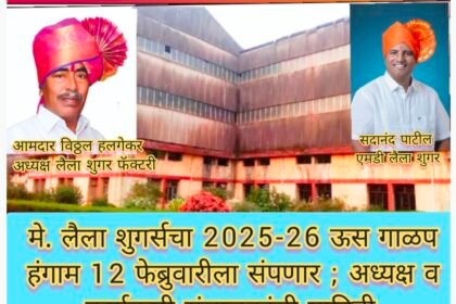 मे. लैला शुगर्सचा 2025-26 ऊस गाळप हंगाम 12 फेब्रुवारीला संपणार ; अध्यक्ष…