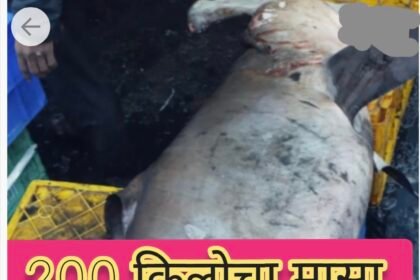 खानापुर फिश मार्केट मध्ये 200 किलोचा मासा. खवय्यांची गर्दी – ಖಾನಾಪುರ ಮೀನು ಮಾರುಕಟ್ಟೆಯಲ್ಲಿ 200 ಕೆ.ಜಿ ಮೀನು, ಖರೀದಿಗೆ ಜನ ಮುಗಿಬಿದ್ದಿದ್ದಾರೆ.