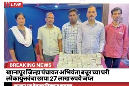 खानापूर जिल्हा पंचायत अभियंता बन्नूरच्या घरावर लोकायुक्तांचा छापा. 27 लाख जप्त – ಖಾನಾಪುರ ಜಿಲ್ಲಾ ಪಂಚಾಯತ್ ಇಂಜಿನಿಯರ್ ಬನ್ನೂರ ಮನೆ ಮೇಲೆ ಲೋಕಾಯುಕ್ತ ದಾಳಿ ನಡೆದಿದೆ. 27 ಲಕ್ಷ ವಶಪಡಿಸಿಕೊಂಡಿದ್ದಾರೆ.