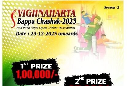 1 लाखांची, विघ्नहर्ता बाप्पा चषक हाफ पिच नाईट खुल्या क्रिकेट स्पर्धा 23…