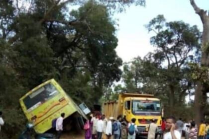 गुंजी जवळ परिवहन मंडळाची बस कलंडली. सुदैवाने जीवित हांणी झाली नाही-ಗುಂಜಿ ಬಳಿ ಸಾರಿಗೆ ಮಂಡಳಿ ಬಸ್ ಪಲ್ಟಿಯಾಗಿದೆ. ಅದೃಷ್ಟವಶಾತ್ ಯಾವುದೇ ಪ್ರಾಣಹಾನಿಯಾಗಿಲ್ಲ.