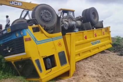 रस्त्याच्या कडेला थांबलेला वाळूने भरलेला डंपर पलटी झाल्याची घटना चिकोडी जवळील चिंचणी…