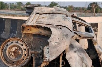 समृद्धी महामार्गावर भीषण अपघातानंतर कार जळून खाक, दोघांचा होरपळून मृत्यू-ಸಮೃದ್ಧಿ ಹೆದ್ದಾರಿಯಲ್ಲಿ ಭೀಕರ ಅಪಘಾತದ ನಂತರ, ಕಾರು ಸುಟ್ಟುಹೋಯಿತು, ಇಬ್ಬರು ಸಾವನ್ನಪ್ಪಿದರು