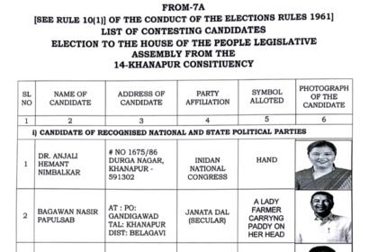 खानापूर : खानापूर विधानसभेच्या निवडणुकीत उमेदवारी अर्ज पाठीमागे मागे घेण्याची तारीख संपल्यानंतर…