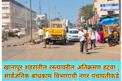 खानापूर शहरातील रस्त्यावरील अतिक्रमण हटवा ; सार्वजनिक बांधकाम विभागाची नगर पंचायतीकडे मागणी-नगरपंचायतीचे…
