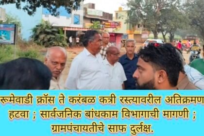 रुमेवाडी क्रॉस ते करंबळ क्रॉस रस्त्यावरील अतिक्रमणे तात्काळ हटवा ; करंबळ ग्रामपंचायतचे…