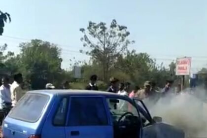 करंबळ कत्री येथील नवीन बेळगाव गोवा महामार्गावर असलेल्या ब्रिजच्या खाली धावत्या कारला आग(video)