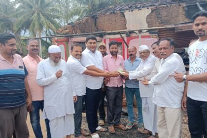 रामापूर दुकान व घरजळीतग्रस्त कुटुंबाला काँग्रेस नेते इरफान तालिकोटी यांच्या कडून मदत