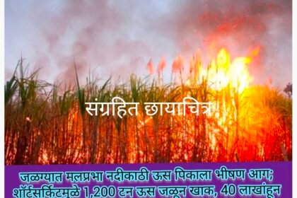 जळग्यात मलप्रभा नदीकाठी ऊस पिकाला भीषण आग; शॉर्टसर्किटमुळे 1,200 टन ऊस जळून…