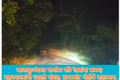 खानापूर-नंदगड मार्गावर गवि रेड्यांचा कळप; वाहनधारकांची उडाली धांदल, ग्रामस्थांत भीतीचे वातावरण – ಖಾನಾಪುರ–ನಂದಗಡ್ ರಸ್ತೆಯಲ್ಲಿ ಕಾಡು ಎಮ್ಮೆಗಳ ಕಾಟ; ವಾಹನ ಸವಾರರಲ್ಲಿ ಗೊಂದಲ – ಗ್ರಾಮಸ್ಥರಲ್ಲಿ ಆತಂಕ