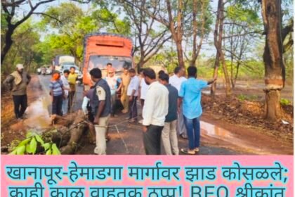 खानापूर-हेमाडगा मार्गावर झाड कोसळले; काही काळ वाहतूक ठप्प! RFO श्रीकांत पाटील यांनी…