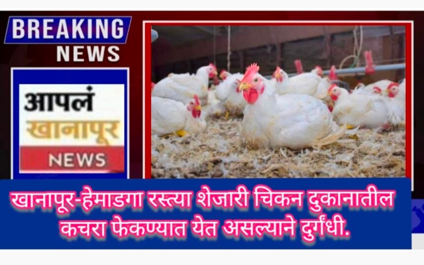 खानापूर-हेमाडगा रस्त्या शेजारी चिकन दुकानातील कचरा फेकण्यात येत असल्याने दुर्गंधी पसरली आहे.