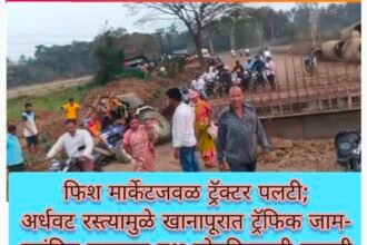 फिश मार्केटजवळ ट्रॅक्टर पलटी; अर्धवट रस्त्यामुळे खानापूरात ट्रॅफिक जाम-प्रलंबित रस्त्याचा प्रश्न सोडविण्याची…