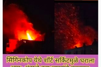 सिंगिंनकोप येथे शॉर्ट सर्किटमुळे घराला आग; अंदाजे दहा लाखांचे नुकसान-ಶಾರ್ಟ್ ಸರ್ಕ್ಯೂಟ್ನಿಂದ ಸಿಂಗಿಂನಕೊಪ ಊರಿನಲ್ಲಿ ಮನೆಗೆ ಬೆಂಕಿ; ಅಂದಾಜು ಹತ್ತು ಲಕ್ಷ ನಷ್ಟ.