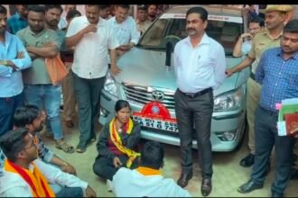 कन्नड संघटनांनी अनगोळ महाराष्ट्र चौक फलक काढावा म्हणून महानगर पालिकेच्या समोर धिंगाणा घातला – ಅಂಗೋಲ್ ನಲ್ಲಿ ಮಹಾರಾಷ್ಟ್ರ ಚೌಕ್ ಬೋರ್ಡ್ ತೆರವಿಗೆ ಕನ್ನಡಪರ ಸಂಘಟನೆಗಳಿಂದ ಪ್ರತಿಭಟನೆ.