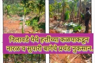 निलावडे येथे हत्तींच्या कळपाकडून नारळ व सुपारी बागेचे प्रचंड नुकसान; शेतकऱ्यांचा संताप…