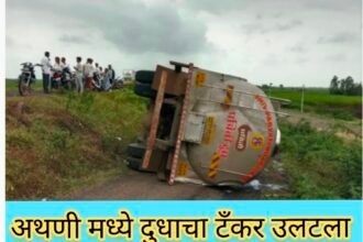 अथणी : दुधाचा टँकर उलटला ; चालक थोडक्यात बचावला-ಅಥಣಿ ; ಹಾಲಿನ ವಾಹನ ಪಲ್ಟಿ ; ಚಾಲಕ ಪಾರು.